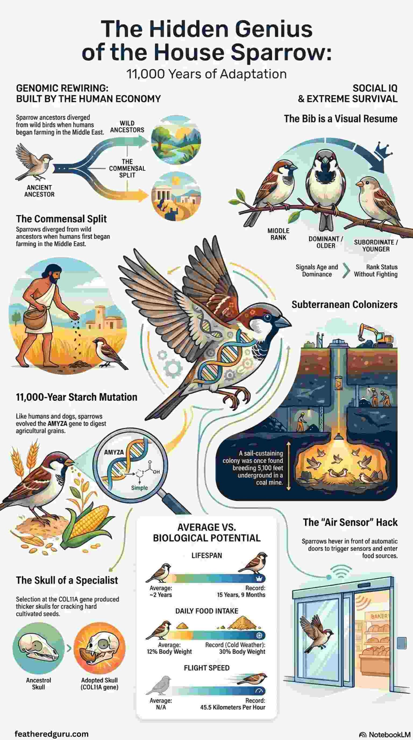 We’ve covered the deep genomic history and the fierce social structures, but how do all these “secrets” fit together in the daily life of a sparrow? The infographic below synthesizes our 25-point dossier into a single visual master key.